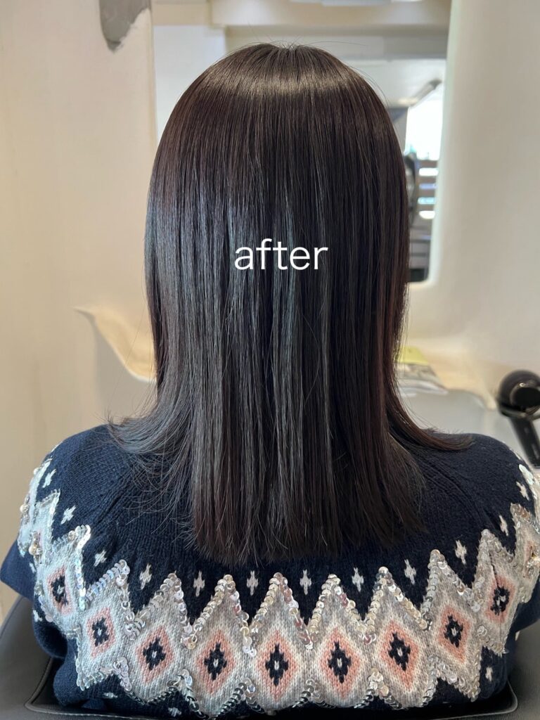 まるで髪質が変わったかなような、髪質改善されたような自然なストレートです。