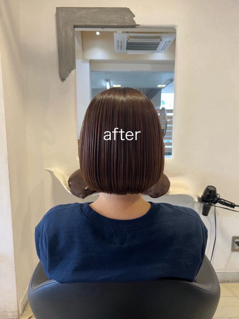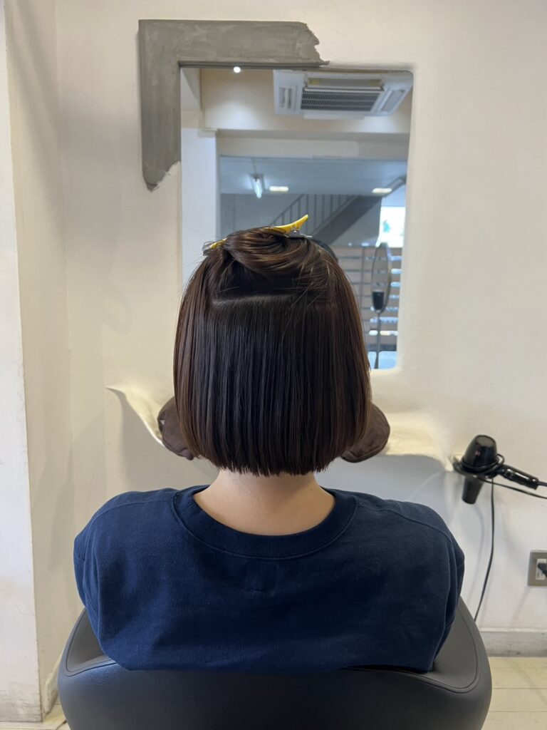 バッサリとボブに切りましたが、アイロンで毛先をワンカールさせるといい感じになりやすいので、オススメです。