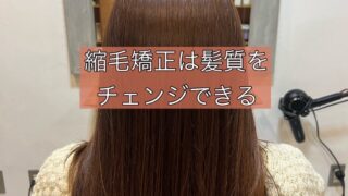 ゴワゴワと広がってしまう髪質を優しく縮毛矯正していき、柔らかい質感に変えていきます。