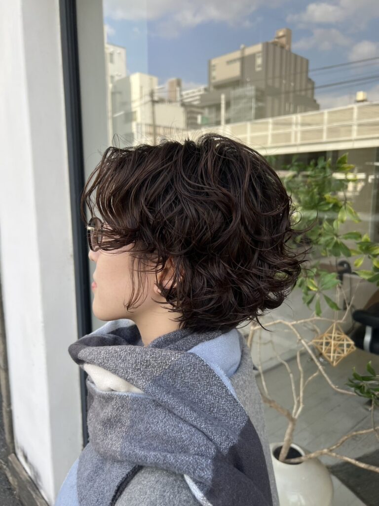 伸ばしかけのショートカットにデジタルパーマをかけて少しずつ伸ばしていきます。
