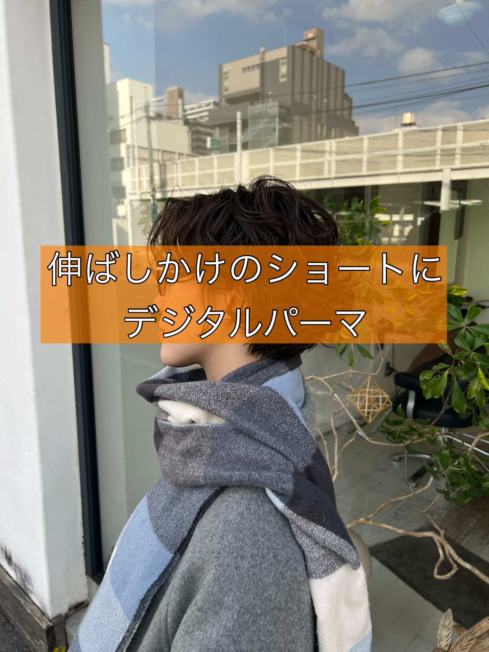 伸ばしかけのショートカットにデジタルパーマをかけて少しずつ伸ばしていきます。