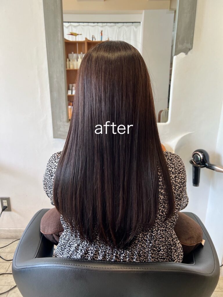 まるで髪質が変わったかなような、髪質改善されたような自然なストレートです。