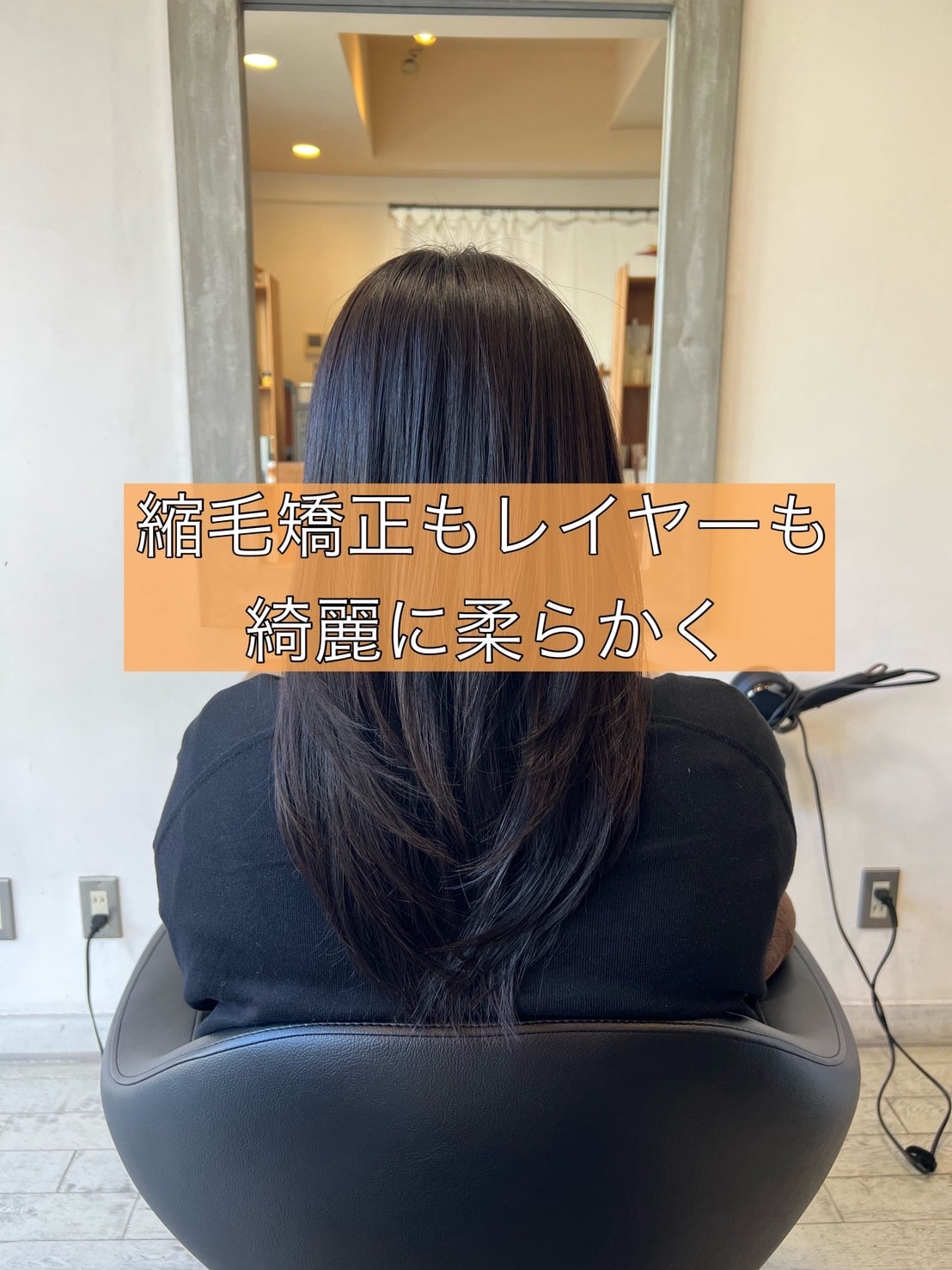 縮毛矯正とレイヤーは毛先が馴染んでしまうので、毛先をアイロンでスタイリングするといい感じにレイヤーの質感が出てくると思います。