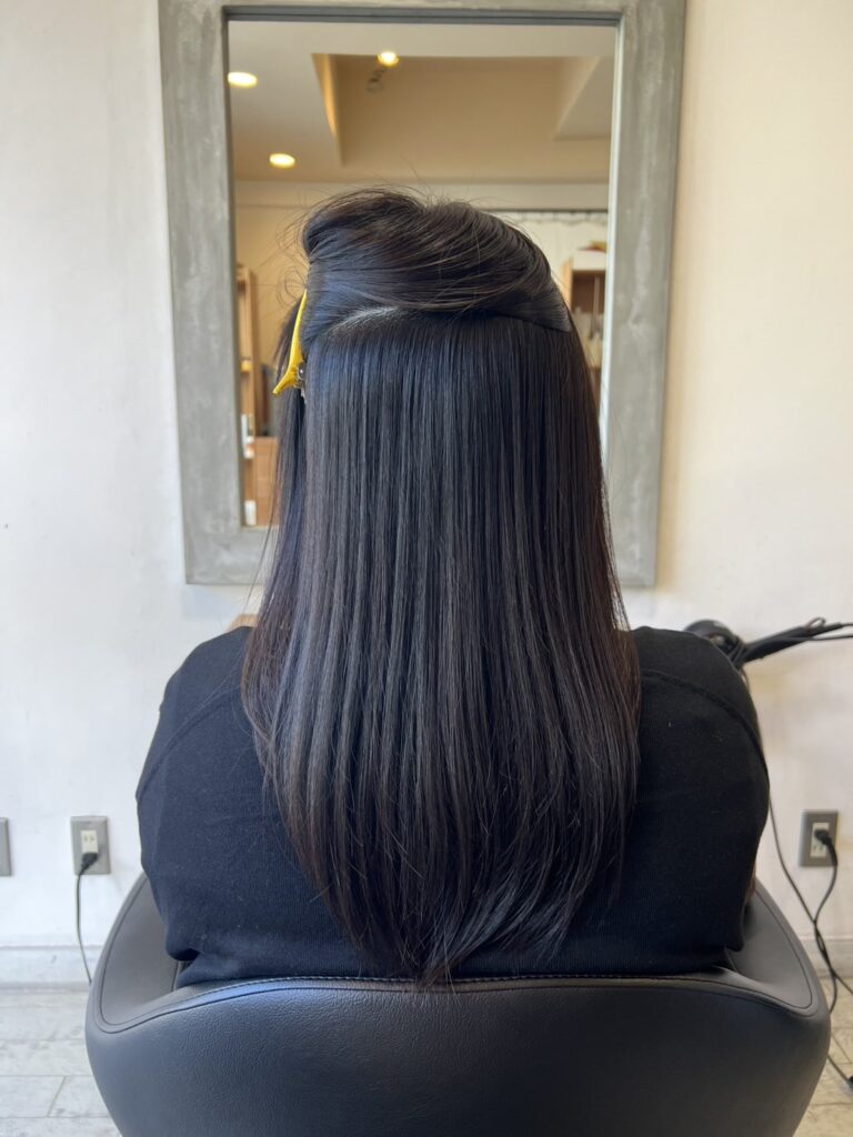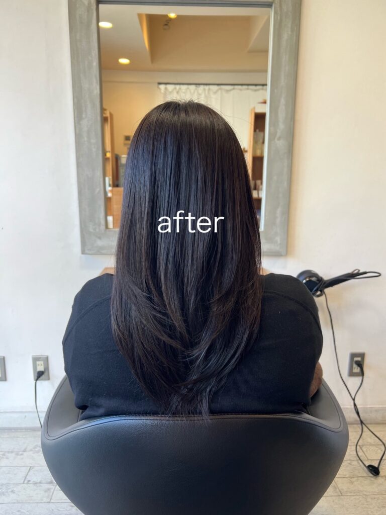 まるで髪質が変わったかなような、髪質改善されたような自然なストレートです。