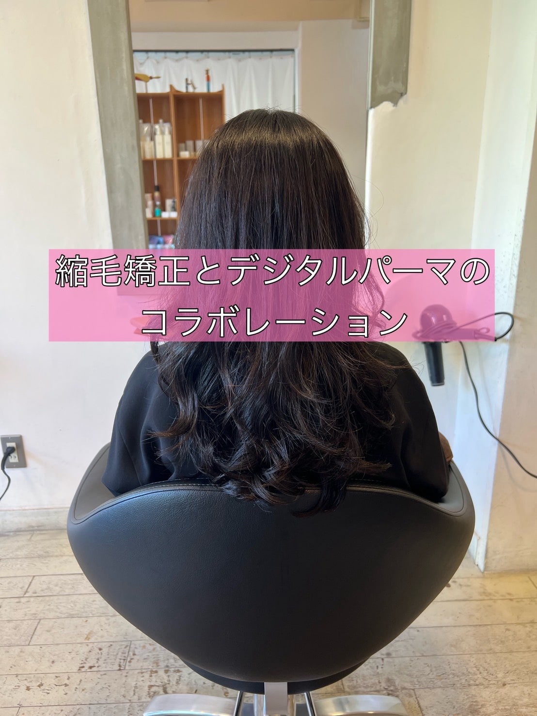 根元は縮毛矯正で毛先はデジタルパーマのストレートデジパのご紹介です
