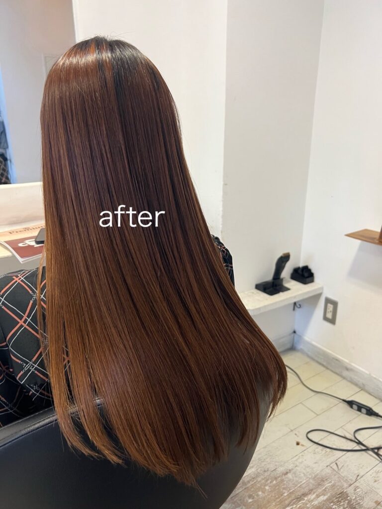 まるで髪質が変わったかなような、髪質改善されたような自然なストレートです。