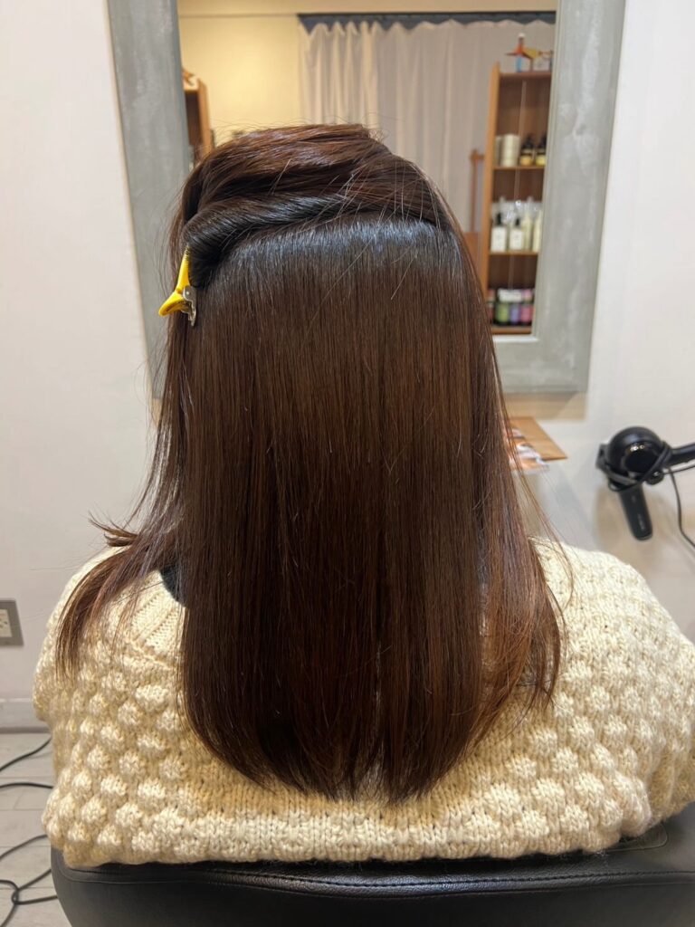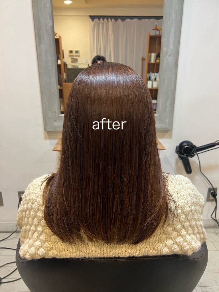 まるで髪質が変わったかなような、髪質改善されたような自然なストレートです。