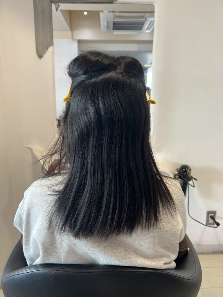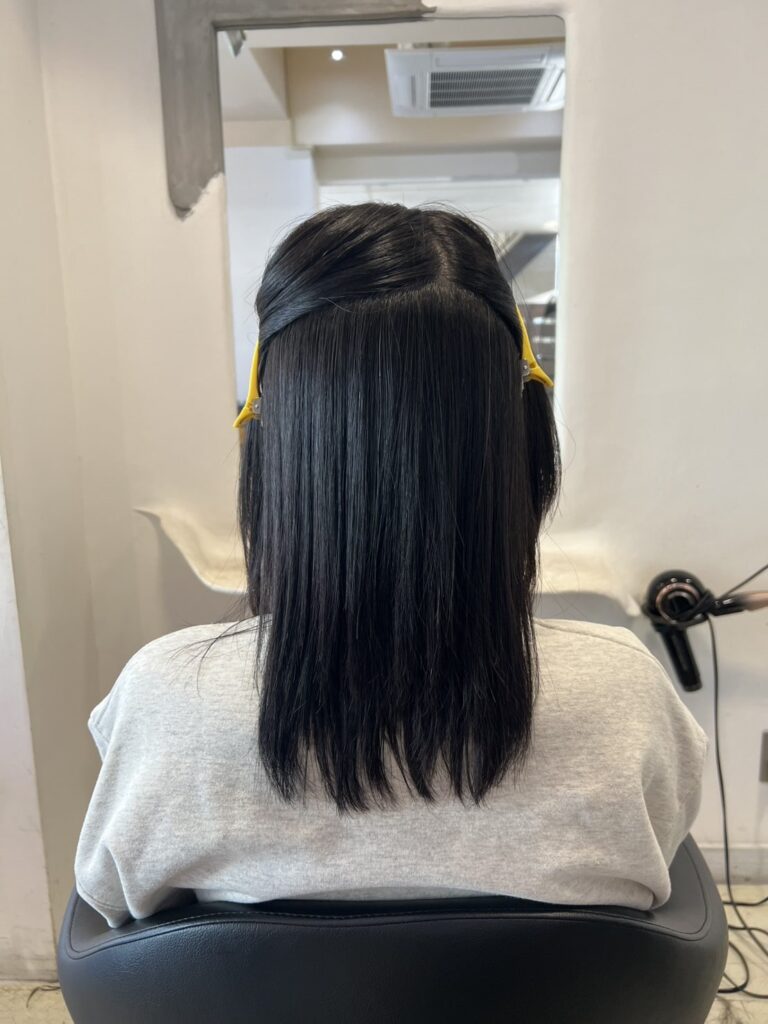 まるで髪質が変わったかなような、髪質改善されたような自然なストレートです。