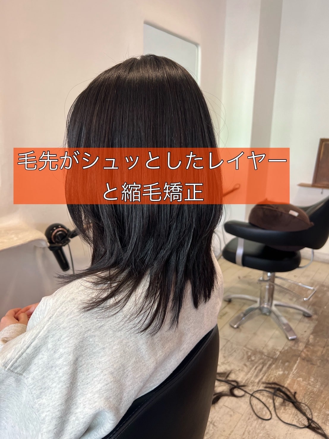 縮毛矯正して毛先がシュッとしたレイヤースタイルにしたい。