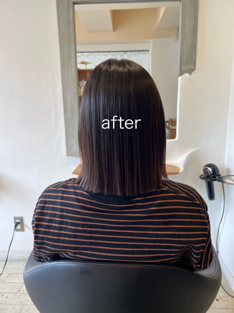 まるで髪質が変わったかなような、髪質改善されたような自然なストレートです。